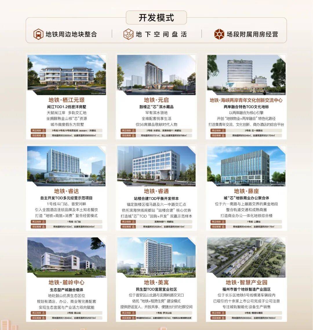 作为福州地铁集团全资子公司及城市轨道资源经营核心主体,福州地铁置业自2015年成立以来,以“精细化、人本化、低密度”为TOD发展核心导向,围绕“站城人产商园”一体融合,构建起“三大开发方向+四大业态的创新TOD生态体系,实现从“资源盘活到“场景运营的跨越。