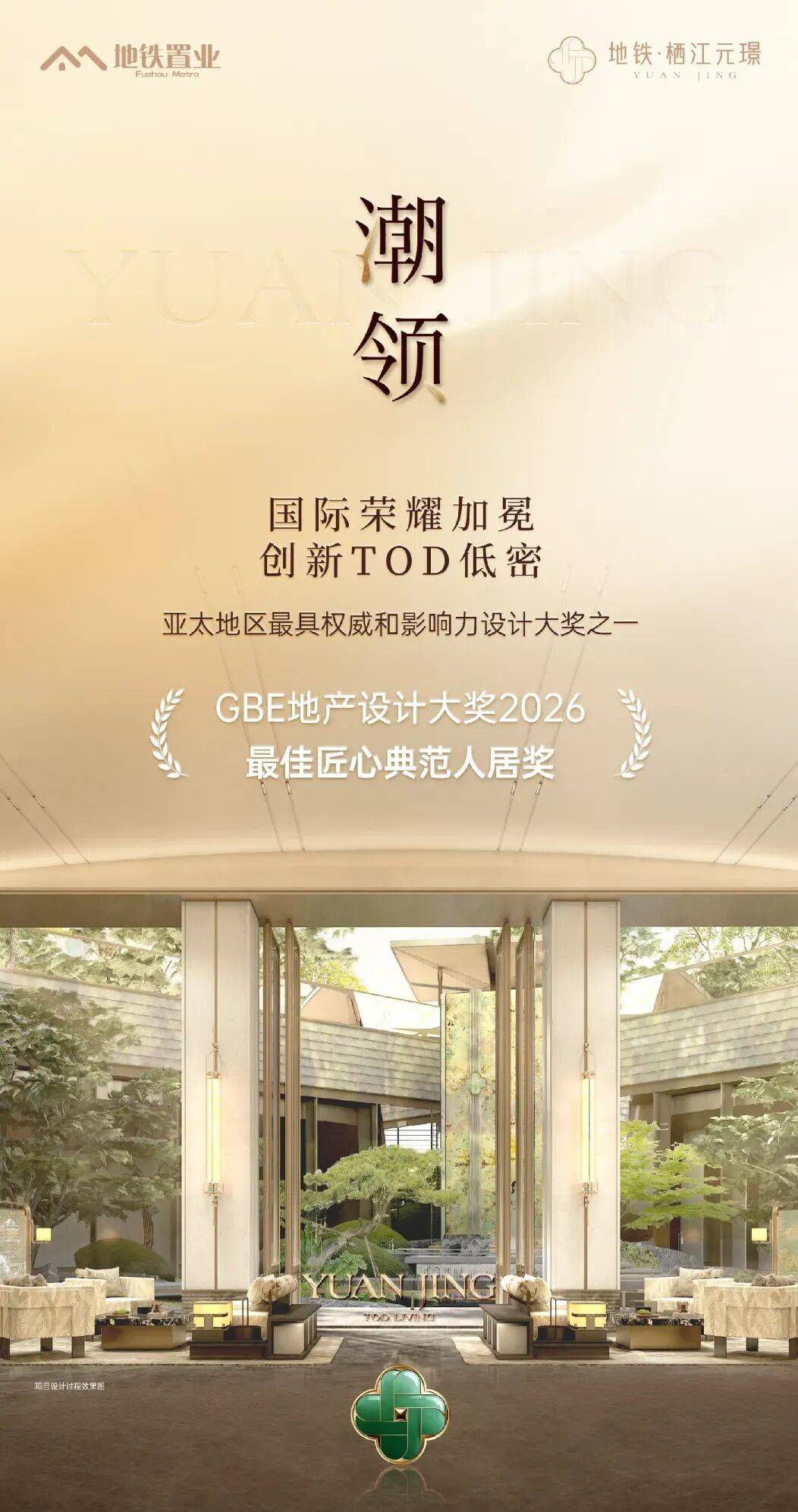 此外,由亚太地区最具权威的建筑研究机构之一 “GBE” 举办的“GBE奢居未来・高端住宅价值创新峰会”在上海举办,地铁·栖江元璟项目荣膺【最佳匠心典范人居奖】。两项全国性权威大奖,彰显了福州地铁集团在轨交营城领域的国企担当与行业引领地位。