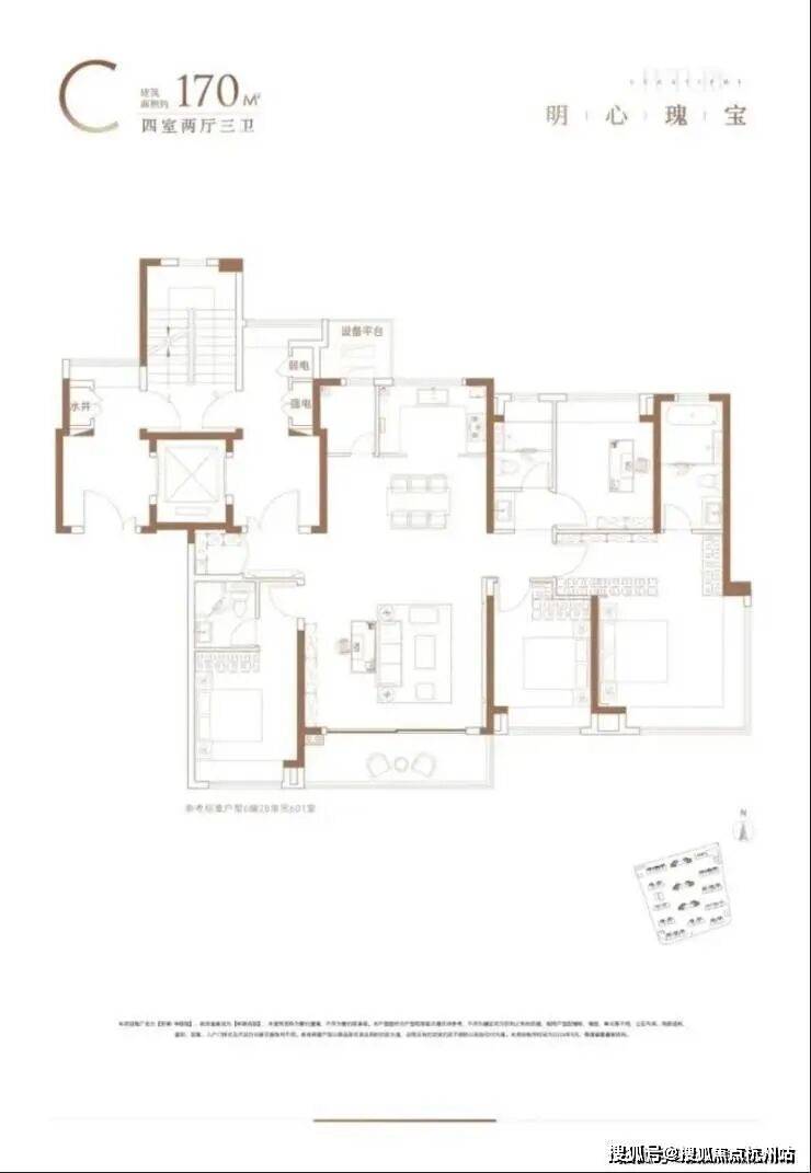 安高申陇院建面约170㎡四房两厅三卫,以突破性尺度成就区域改善之作,四房空间张弛有度,这不仅在于其房间数量,更在于对每一寸空间的规划所带来的整体舒适性与尊崇感。约79-80%的高得房率,让住宅的实际使用空间显著扩容。